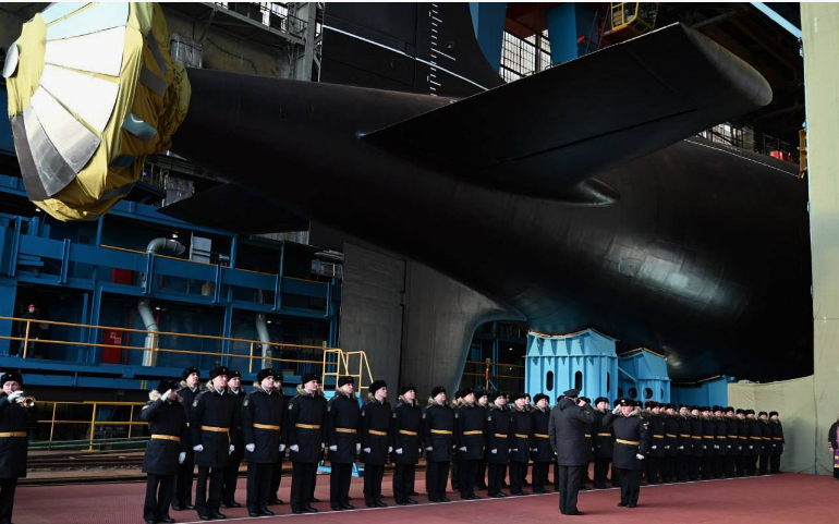 28 марта, перед посещением атомного подводного крейсера "Архангельск" президент Владимир Путин дал команду к спуску на воду новой подлодки класса "Ясень-М". Новый атомоход "Пермь" будет первой подводной лодкой полностью оснащенной гиперзвуковыми ракетами "Циркон". "Ясень-М" имеет меньшую длину и водоизмещение, и еще больше невидим для противника. Вследствии установки нового оборудования и автоматизации процессов управления, нахождения и уничтожения целей, экипаж сокращен до 64 человек, более половины из которых офицеры. Лодка может передвигаться со скоростью до 57 км/час на глубине до 600 метров. Автономность плавания 100 дней. Подлотка имеет полуторакорпусную конструкцию с легким корпусом только в носовой части, основную часть которой занимает сферическая акустическая антенна - 1. Еще несколько антенн находятся по бортам лодки. Благодаря этой системе "Ясень" может не только определять расстояние до цели, но и точное ее расположение по направлению, что облегчает задачу ее уничтожения у