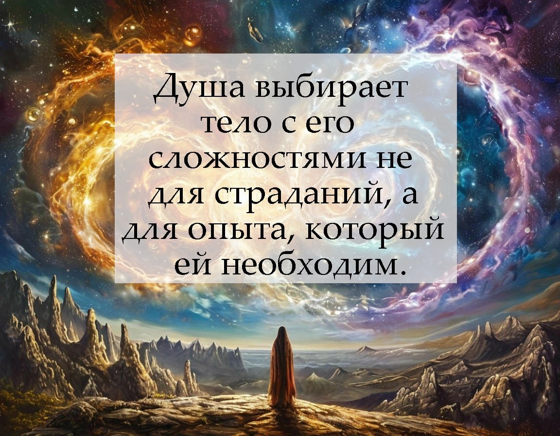"Нельзя сказать, что, например, тяжелую наследственную болезнь человеку приносит его душа — она встраивается в тело с уже имеющимся набором сложностей, чтобы прожить тот опыт, который ей необходим. Сценарий любой жизни всегда становится сочетанием исходных параметров личности и задач высшего я. Это в любом случае предполагает и флуктуации сценария, определенные выборы, которые будут сделаны уже по сумме чувств, мыслей и в целом решений высшего я и человека той или иной степени созвучности." Цитата из книги Эриема "Вечность в деталях: взгляд на устройство Вселенной с тонкого плана."