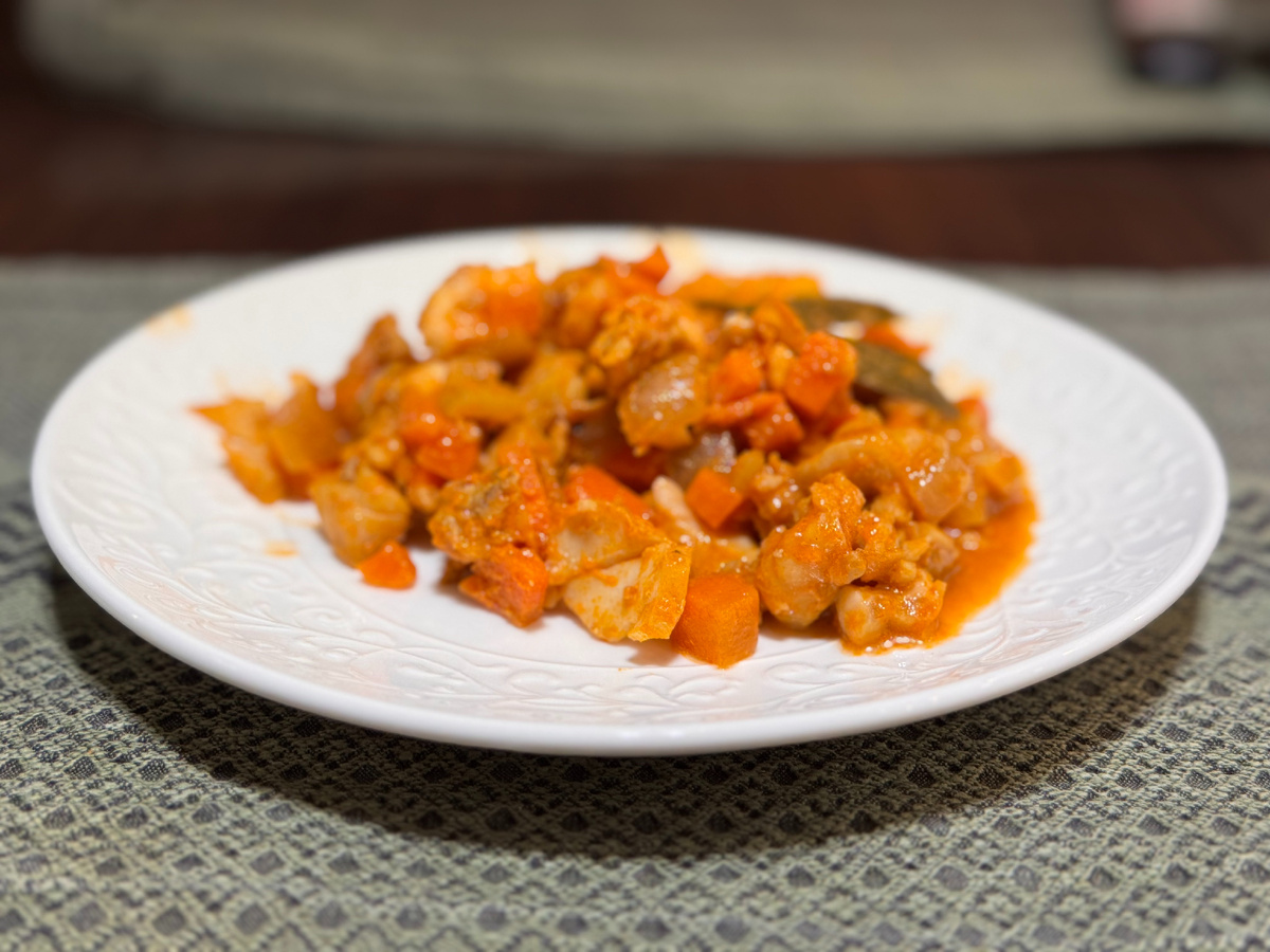 - Тушите треску под маринадом под крышкой на минимальном огне 10 минут, затем выключите и оставьте остывать под крышкой