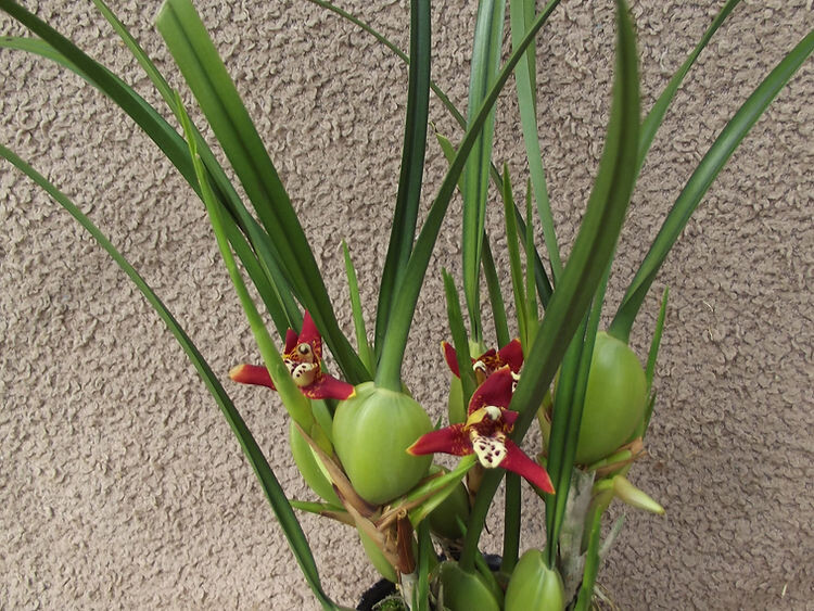 У этой орхидеи плотные псевдобульбы, которые отлично накапливают воду. Благодаря этому она может переносить периоды засухи и очень сухую среду, но чувствительна к чрезмерному поливу.
