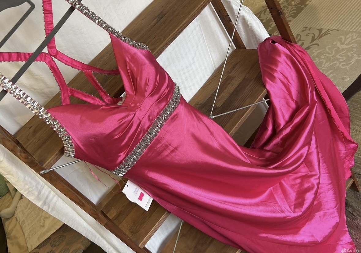 Купила в эмоциях, продавала долго и методично. История платья, которое 10 лет ждало, чтобы выйти в свет. И дождалось ведь. Думаете, на выпускной? Ну нет, это было бы слишком просто! Напоминаю, я Таня, а вы на канале «Эврика, царские шмотки!» — про находки из секонд-хенд для себя и на продажу. Красивое, правда? Ярко-розовое атласное, длиною в пол, с расшитой стеклярусом спинкой-портупеей. Оно уже появлялось в моих статьях. В объявлении о продаже предлагали купить меня вместе с платьем. А это даже не я, а подруга! Куда такое может понадобиться? На выпускной, в качестве гостьи на свадьбу, на корпоратив? Из-за материала выглядит немного устаревшим, как по мне. Сейчас на выпускной, например, девушки одеваются иначе — минималистично, но с шиком. По запросу «платье на выпускной 2025» Пинтерест предлагает такие варианты: А мое платье? Угадаете, сколько ему лет? У меня оно лежало с 2016го года. А ведь купили мы уже уцененным, на распродаже. В тот год я впервые привезла мужа в Железногорск к