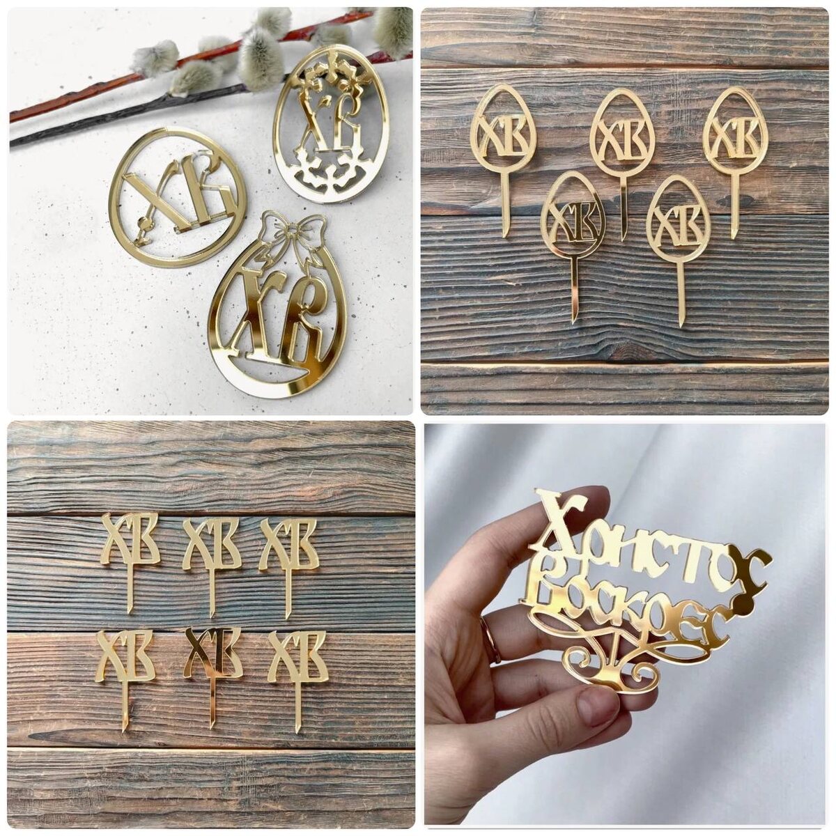 🪺 Топпер пасхальный ХВ золотой акрил