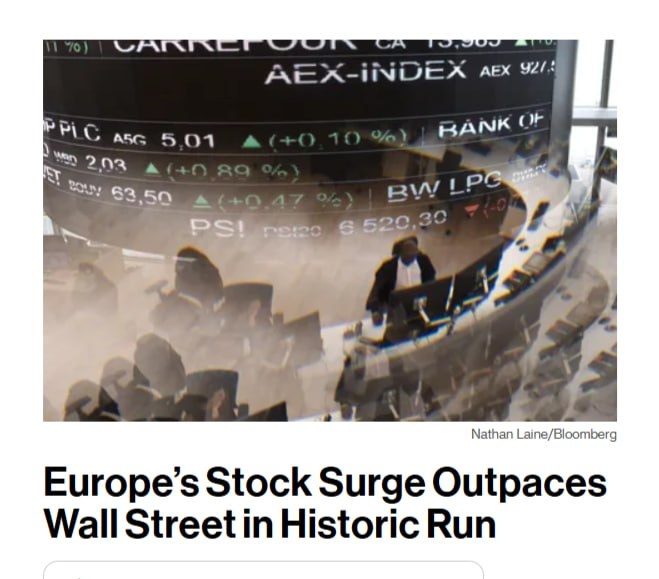 🤨 Рост фондовых рынков Европы опережает Уолл-стрит в исторической перспективе, - радуется Bloomberg