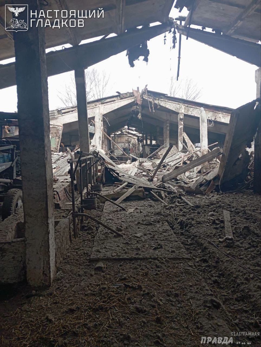 В Краснояружском районе в селе Надежевка в результате обстрела серьёзные повреждения получило фермерское хозяйство — разрушен ангар, а также повреждены рядом стоящие сооружения и два трактора.