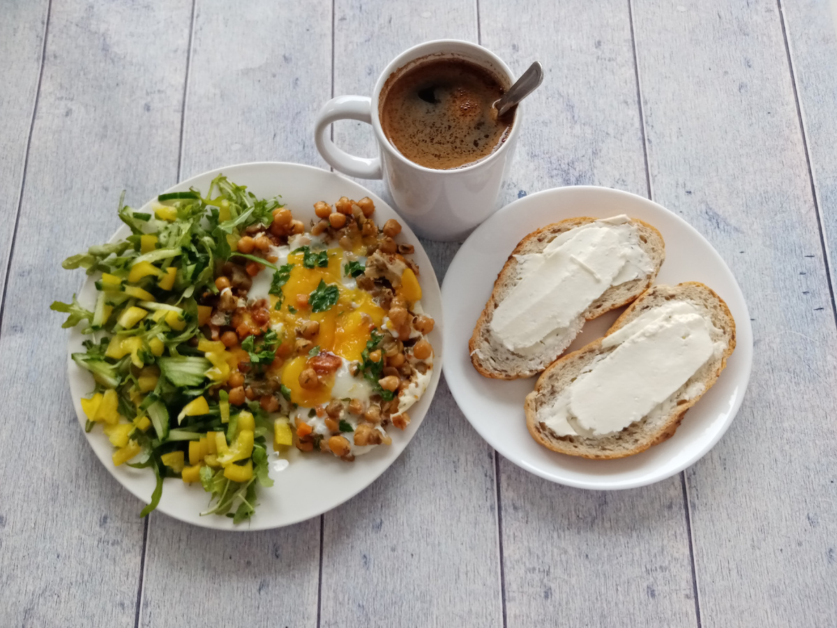 Отсчитала ещё одну неделю похудения. Делюсь результатами контрольного взвешивания. Приветствую вас. Я — Анна. Худею со 130 кг. Долгосрочная цель — весить 70 кг. Сбросила 34 кг. Считаю калории, работаю с эмоциями, увеличиваю физическую активность. Присоединяйтесь). Вчерашние тарелочки. Завтрак: яичница и нут с овощами, салат, бутерброды с адыгейским сыром и кофе. Обед: тушёная картошка с индейкой и квашеная капуста. Надо ещё одну банку заквасить, пока не пропала в магазинах капуста, пригодная для квашения. Потом мне захотелось молочной пшённой каши с тыквой и сливочным маслом. Получилась такая каша-конструктор. В холодильнике было готовое пшено и тыквенное пюре — превратила в кашу). И ещё яблоко сверху схомячила. На ужин был суп из чечевицы, не сфоткала. КБЖУ. Средняя ежедневная калорийность на этой неделе 1804. Вчера углеводы на меня напали или я на них). 200 г углеводов для меня много. Белка совсем не хотелось, что странно. Более-менее приличную норму белка набрала только благодаря че