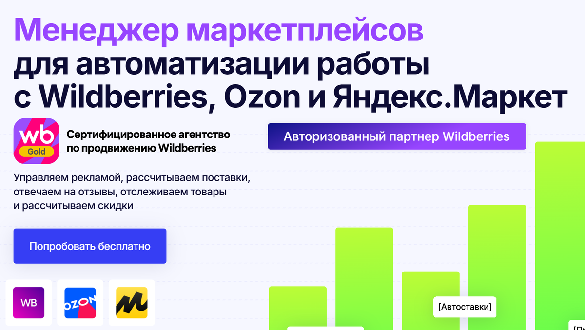 MpManager — это комплексный инструмент для управления ценами на маркетплейсах Ozon, Wildberries, Яндекс.Маркет и AliExpress. Сервис предлагает динамическое ценообразование, анализ конкурентов, управление запасами и SEO-оптимизацию.