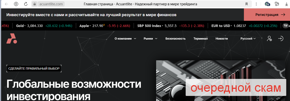 Домен Acuantlite.com был зарегистрирован только в январе 2025 года, что говорит о том, что платформа работает всего месяц. Несмотря на это, на сайте брокера указана ложная информация о многолетнем опыте. Такой подход – частый признак мошеннических проектов, которые создаются на короткий срок, а затем исчезают, оставляя клиентов без вложенных средств. Если компания с первых дней обманывает посетителей, ей нельзя доверять в вопросах финансов.