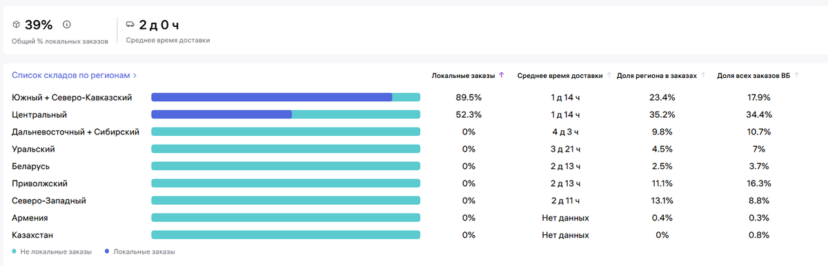 Если из 200 ваших заказов 160 были выполнены в пределах того же федерального округа, где расположен склад Wildberries, ваш индекс локализации составит 80%. Критерии учета заказов: