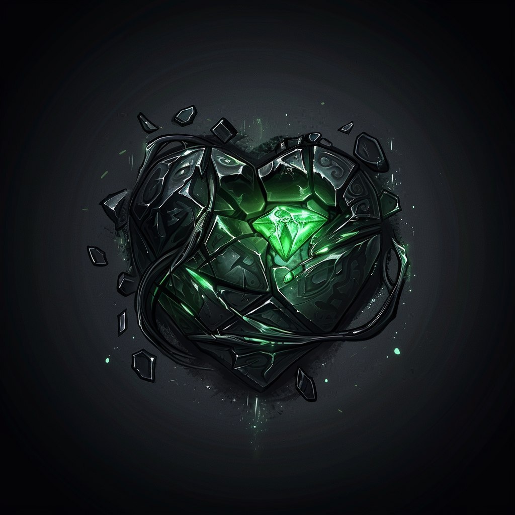 Создано на основе запроса: a minimalist fantasy emblem inspired by World of Warcraft healing magic, depicting a cracked arcane heartstone or