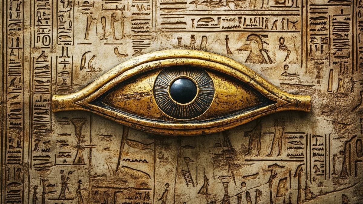 Создано на основе запроса: A golden eye of horus displayed on a background of ancient writings