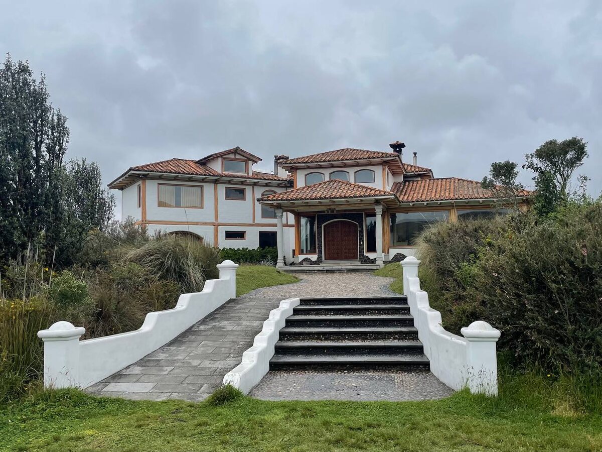 Асьенда (усадьба по-нашему) Лос Мортиньос – ещё одно место нашего обитания. Расположена она совсем рядом с въездом в национальный парк Котопакси и находится на высоте 3700 метров. Здесь останавливаются такие как мы, желающие взойти на Котопакси, чтобы провести ночь, перед тем как подняться в приют. Те, кто любит активный отдых и не прочь провести время, в бодрых прогулках или пробежках на высоте в красивом месте. Или те, кто просто хочет провести время в красивом месте и кого не пугают достаточно прохладные помещения и высота в почти четыре тысячи метров. К услугам туристов здесь предлагают прогулки на лошадях и созерцательные виды (в хорошую погоду). В асьенде два здания. Одно побогаче, с каминным залом и комнатами с печками (в одной из комнат, говорят, даже есть джакузи). В зале с камином – это центральное общее помещение, откуда расходятся по комнатам – разнообразные картины на стене каких-то местных художников. Очень интересные, выполненные в разной технике. Второе здан
