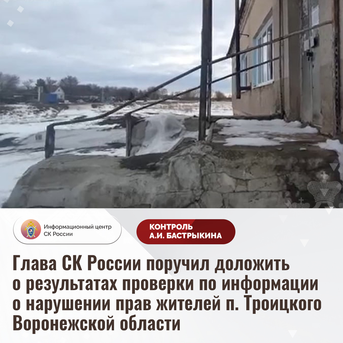 Глава СК России поручил доложить о результатах проверки по информации о нарушении прав жителей п. Троицкого Воронежской области