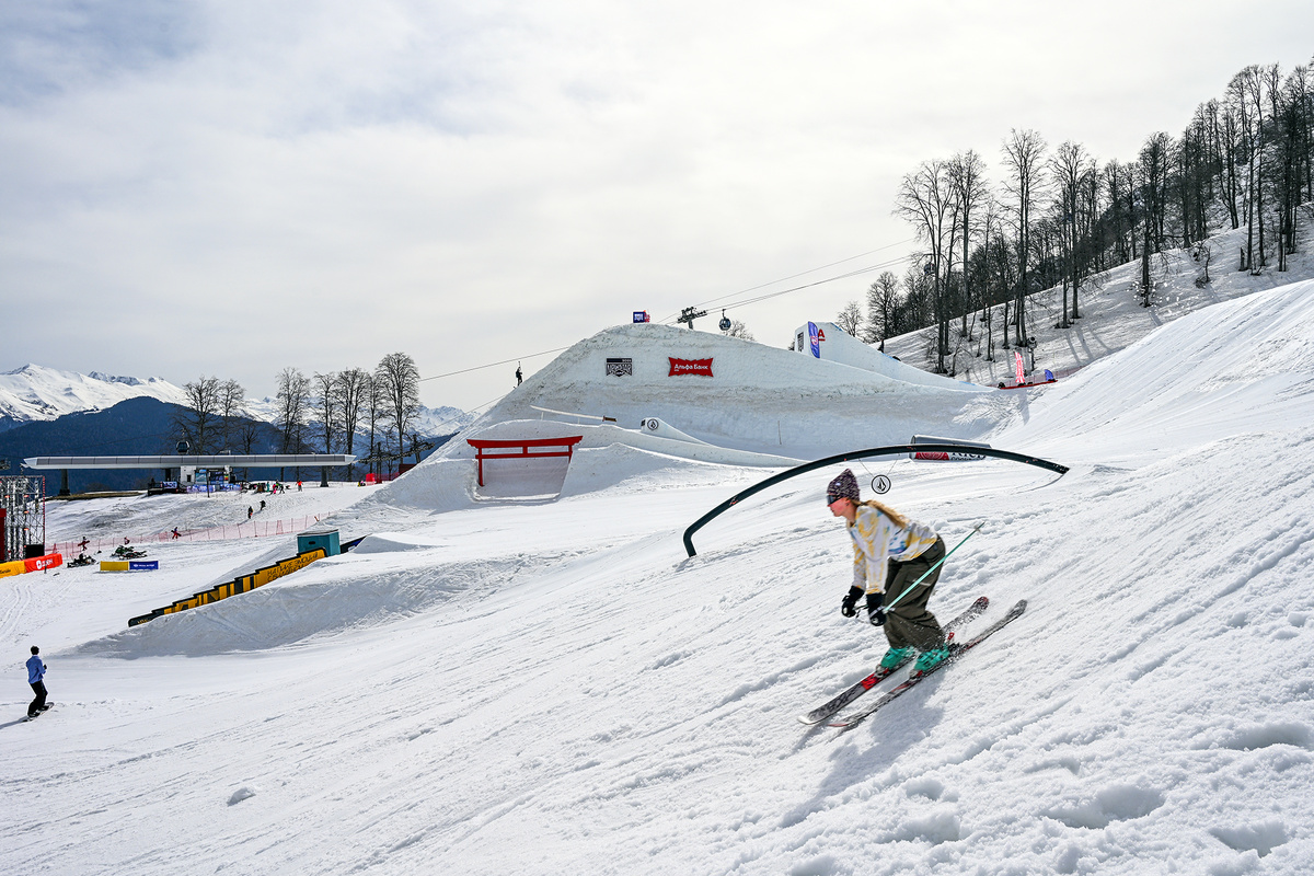Самое главное, что спортивная часть проходила не просто перед зрительскими трибунами. Никакой скуки: хорошие ведущие, музыка, еда, возможность надеть борд или лыжи и выкатиться на одну из площадок рядом, где под вдохновением от трюков спортсменов катнуть или поучаствовать в личном зачете любительских состязаний с денежными призами.
