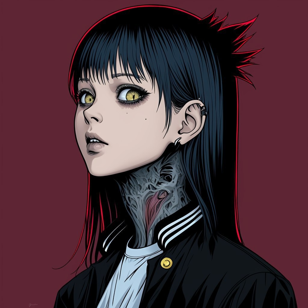 Создано на основе запроса: profile of a demonic woman, glossy, junji ito style