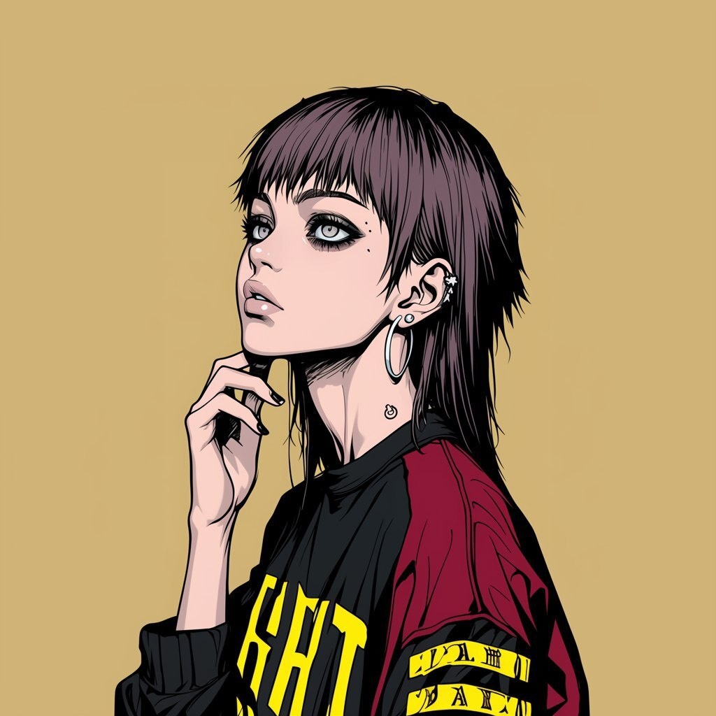 Создано на основе запроса: Profile three-quarter pose female teenager, Junji Ito horror manga style, curly chestnut brown hair with neon green highlights, piercing violet eyes, oversized deep burgundy shirt with golden embroidery, silver hoop earrings, solid warm yellow background, ultra-detailed ink lines, high contrast, 8K --- Автоперевод: Профиль три четверти позы подростка, в стиле манги, в кудрявых каштановых каштановых волосах с неоново-зелеными бликами, пронзительные фиолетовые глаза, негабаритная глубокая бордовая рубашка с золотой вышивкой, серебряными серьгами-обруча Красиво получилось? 🤔 https://dzen.ru/id/65c0c65c86e4f837c27b24d7 #ИИ #AI #нейросеть #midjourney #art