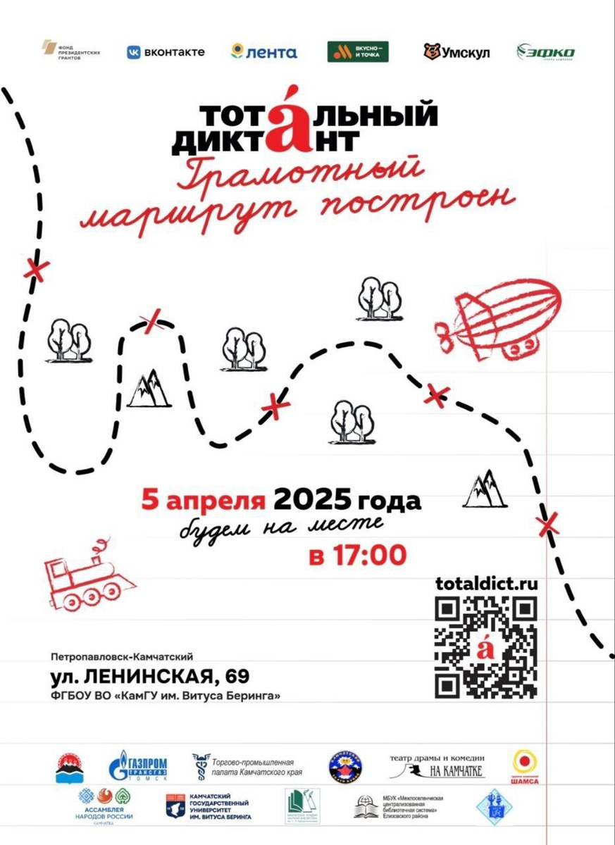 Уже в эту субботу, 5 апреля, вместе напишем «Тотальный диктант» ✏️ КамГУ им. Витуса Беринга выступает региональной площадкой проведения всемирной просветительской акцит, которая проводится с целью популяризации грамотности. Все желающие, независимо от пола, возраста, профессии и образования, могут присоединиться и проверить свой уровень знания русского языка. Время: 17:00 Адрес: ул. Ленинская, 69, конференц-зал. На площадке университета прочитает диктант заслуженная артистка РФ, актриса Камчатского театра драмы и комедии Татьяна Дерегузова. Регистрация уже открыта (количество мест ограничено): 1. зайдите на сайт totaldict.ru, авторизуйтесь через свой личный кабинет или пройдите регистрацию 2. выберите город Петропавловск-Камчатский 3. откройте список площадок и смело жмите на КамГУ им. Витуса Беринга 4. зарегистрируйтесь на площадку 5. проверьте успешность регистрации в личном кабинете ❕Необходимо взять с собой паспорт. ☑️ А в пятницу, 4 апреля в 15:10 в Ауд. 410 третьего к