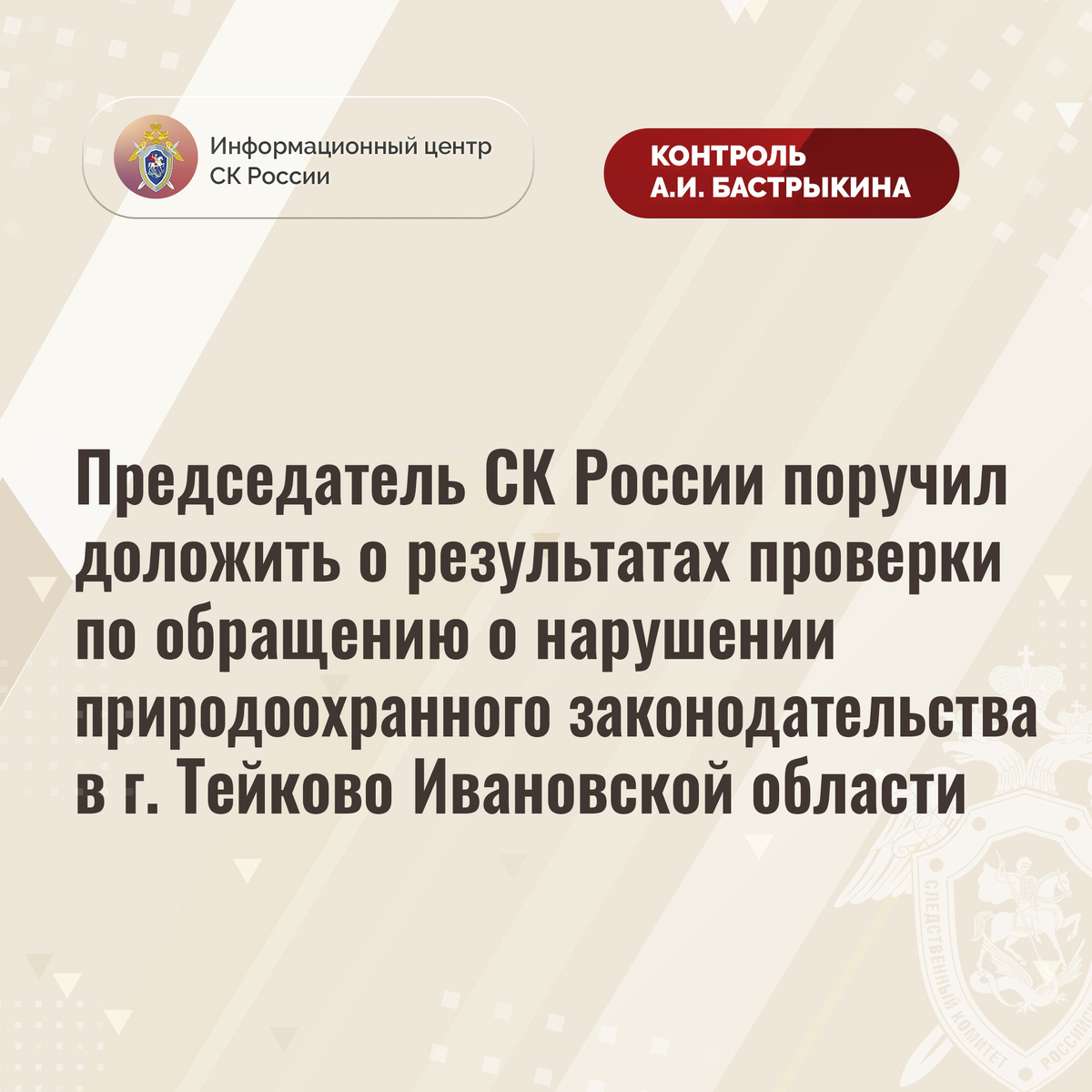Председатель СК России поручил доложить о результатах проверки по обращению о нарушении природоохранного законодательства в г. Тейково