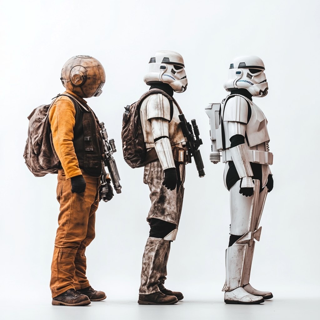 Создано на основе запроса: star wars fans standing in costume from the side against white background