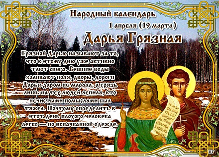 Во вторник 1 апреля 2025 года по приметам судят о погоде на 1 октября. В народном календаре дата получила такие названия: Дарья – грязные проруби, Дарья-пролубница, грязнопролубка, поплавиха, Хрисанф.