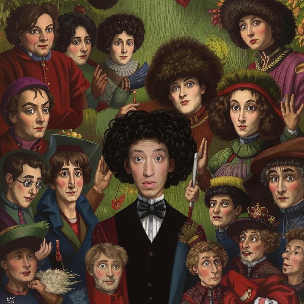 (Сатира, юмористическая фантастика) Глава первая В то время, когда дворяне в России начали жить не по старинке, а по французским моделям, появился герой наш — Евгений Онегин. Однако, судьба свела его не с Татьяной Лариной, а с загадочным существом — Мойдодыром. Мойдодыр был великаном среди всех моющих устройств. С виду он походил на старого дедушку с бородой, но борода эта была не простая, а из щёток и мочалок. Его глаза светились, словно два прожектора, а голос гремел, будто гром небесный. Онегин жил в Петербурге, где каждый день встречался с изысканными дамами и утончёнными господами. Но однажды, возвращаясь домой после бала, он встретил странную фигуру. Это был Мойдодыр, который стоял посреди улицы и громко кричал: — Эй, грязнуля! Где ты прячешься? Я тебя найду и вымою до блеска! Онегин остановился, поражённый таким зрелищем. В его голове мелькнула мысль: "Неужели это тот самый Мойдодыр, о котором рассказывали бабушки?" — Ты кто такой? — спросил Онегин, поправляя свой фрак