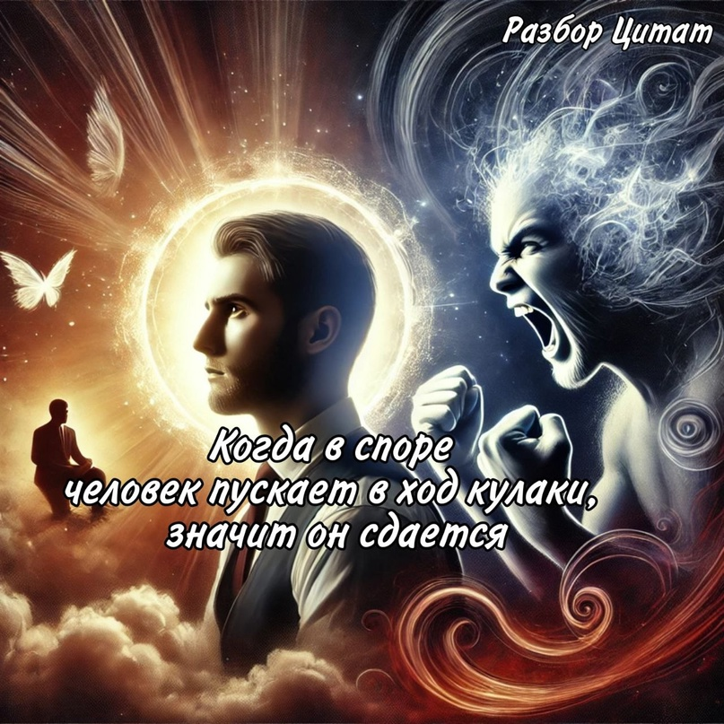 Цитата: 🧠💥«Когда в споре человек пускает в ход кулаки, значит он сдается.» — Алексей Иванович Мусатов 👊💬 Эта мысль напоминает нам: физическая агрессия — не победа, а признание бессилия.