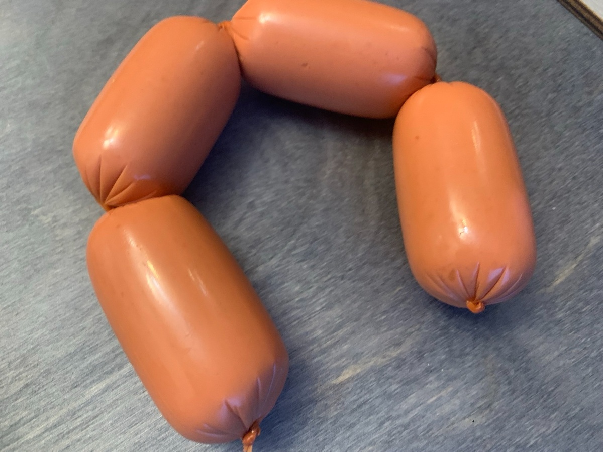 Для начала надо развернуть всю ленту сосисок. Не просто вынуть из упаковки, а именно расправить. Так, чтобы между ними не было перекрученных мест, чтобы полиэтилен лежал ровно, без узелков. В этом и есть весь фокус: оболочка должна быть в натяжении, как струна, а не смятая гармошкой.