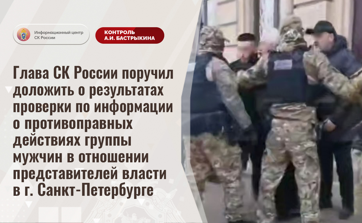 Глава СК России поручил доложить о результатах проверки по информации о противоправных действиях группы мужчин в отношении представителей власти в г. Санкт-Петербурге