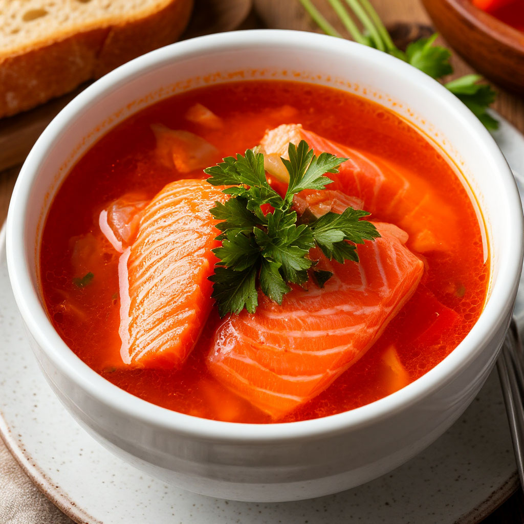 Вот простой и вкусный рецепт ухи из красной рыбы: ▎Ингредиенты: • 500 г красной рыбы (лосось, форель или другая по вашему выбору) • 1-2 картофелины • 1 морковь • 1 луковица • 1-2 лавровых листа • Перец горошком (по вкусу) • Соль (по вкусу) • Зелень (укроп, петрушка) для подачи • Вода (около 1.5-2 литров) ▎Приготовление: 1. Подготовка рыбы: Если у вас целая рыба, очистите ее от чешуи, удалите внутренности и промойте под холодной водой. Нарежьте на порционные куски. 2. Приготовление бульона: • В кастрюлю налейте воду и доведите до кипения. • Добавьте в кипящую воду нарезанные куски рыбы, лавровый лист, перец горошком и немного соли. Уменьшите огонь и варите на медленном огне около 15-20 минут. 3. Добавление овощей: • Пока варится рыба, очистите и нарежьте картофель кубиками, а морковь — кружочками. • После того как рыба проварилась, аккуратно достаньте ее из бульона и отложите в сторону. • В бульон добавьте картофель и морковь. Варите овощи до готовности (примерно 10-15 минут). 4. Заверш