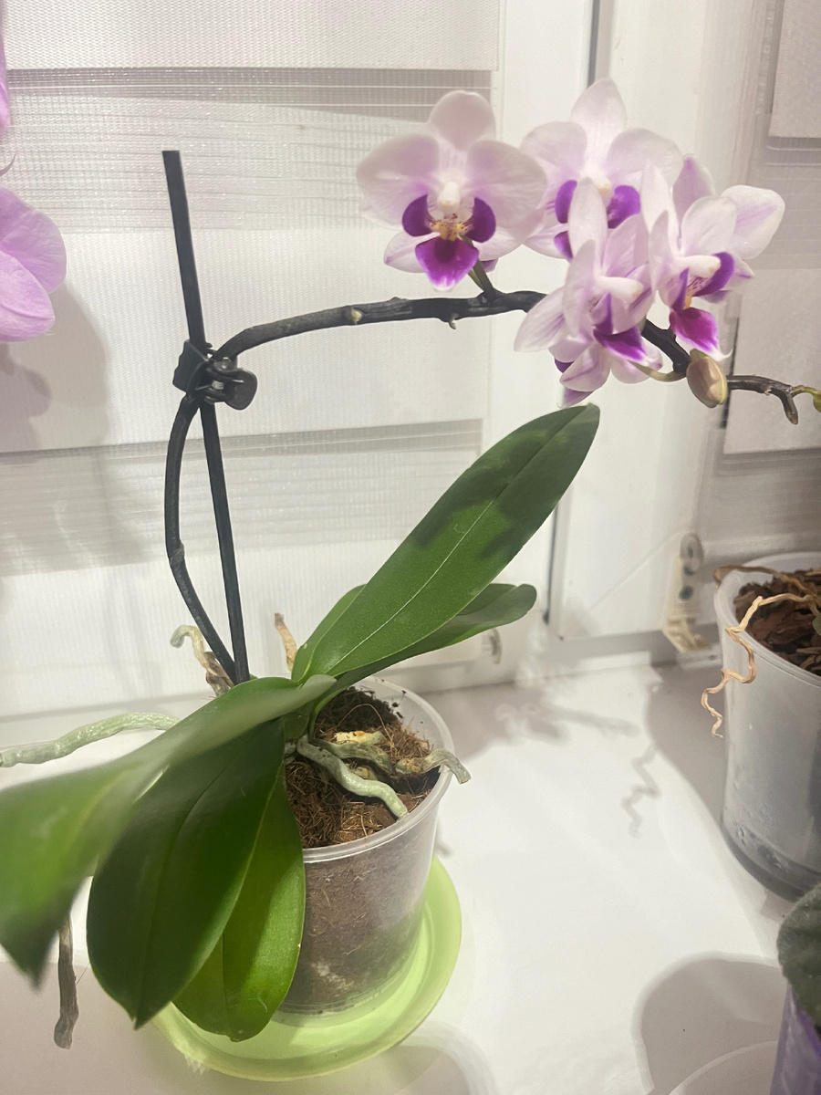 Перед 8 марта все магазины были завалены орхидеями: леруа, ашан, пятерочка, магнит. Цены везде были от полторы тысячи и выше. Я любовалась, но не покупала, дома и так орхидей достаточно. 11 марта пришла за покупками в Ашан. И увидела много орхидеек по скидке. Ну тут уж я не удержалась. Вот с такой красотой я вернулась. Это маленькая орхидейка. Для сравнения вот фото ее рядом с другой моей орхидеей. Такая красота стоила 1600. А взяла я её.... Парам пам пам..... Лучше покажу: За 700 рублей такая красота досталась. Да, я выбрала самую целенькую из всех. Были и подвядшие экземпляры в магазине. Но моя была красоткой, и хотя орхидей у меня много, я взяла и вот уже 3 недели она меня радует. Не жалею нисколько. В Леруа не выгодно брать по скидке. Там без цветов только со скидкой, и не дешевле 900 рублей. Когда я её принесла домой, пальцами нырнула к ее корням и по кускам вытащила оттуда губку. Я не знаю, что это за губка, но у меня с ней орхидея как-то сгнила. С тех пор стараюсь проверя