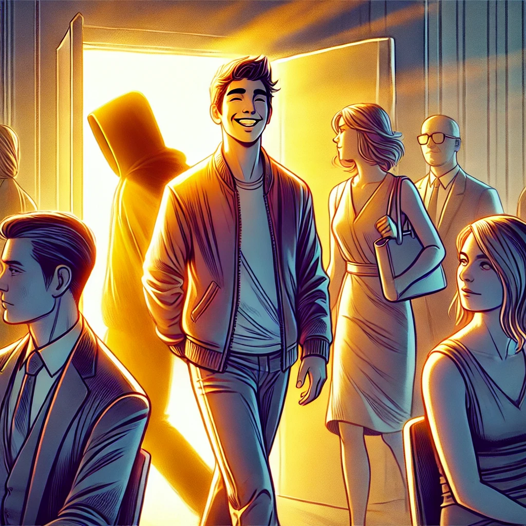 Представь: ты находишься в комнате, полной людей. Смех, разговоры, звуки посуды. И вот открывается дверь. Кто-то заходит.