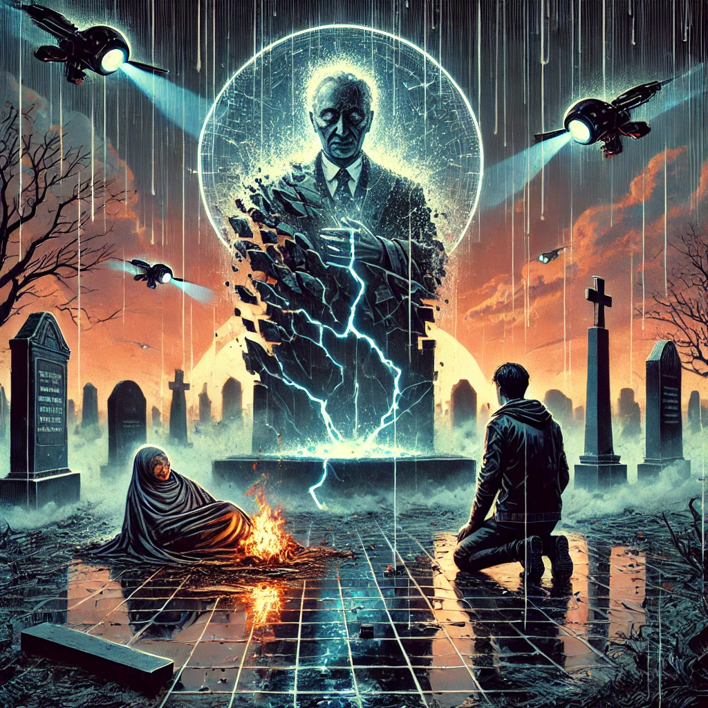 Внезапно сторож, через которого общался ИИ, подпрыгнул и со всего размаху ударился о постамент на соседней могиле. Робот заискрил и разлетелся на мелкие кусочки.