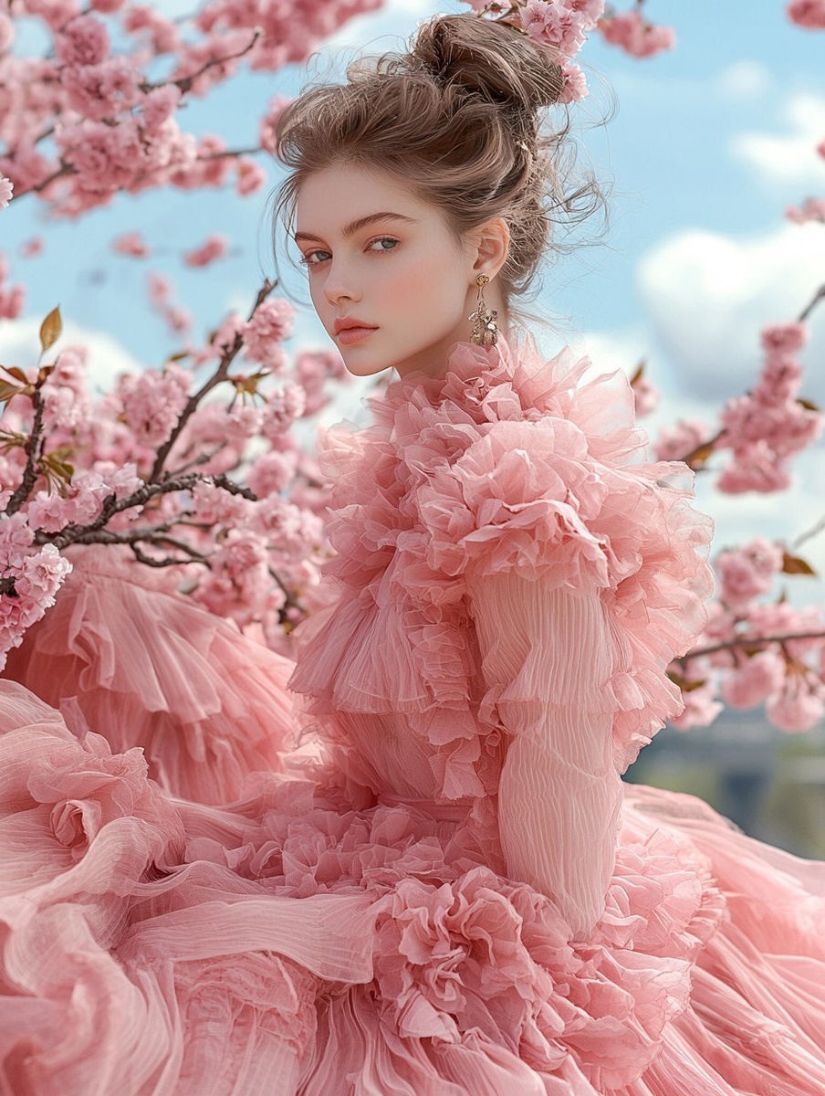 Создано на основе запроса: Single shot photography, front view, a woman dressed in pink chiffon, with a light and flowing skirt and fabric as thin as cicada wings. She has a delicate bun, adorned with accessories between her hair, and a mischievous posture. She sits on the roof of an ancient house surrounded by pink cherry blossom leaves, blue sky and white clouds, and fluttering petals, creating a romantic atmosphere and adding a sense of layering and dreaminess to the picture. The overall presentation presents a classical and beautiful artistic conception with high definition and details --- Автоперевод: Одиночная фотография, вид спереди, женщина, одетая в розовый шифона, с легкой и плавной юбкой и тканью, такой же тонкой, как крылья цикады. Как тебе картинка? 🤔 https://dzen.ru/id/65c0c65c86e4f837c27b24d7 #ИИ #AI #нейросеть #midjourney #art