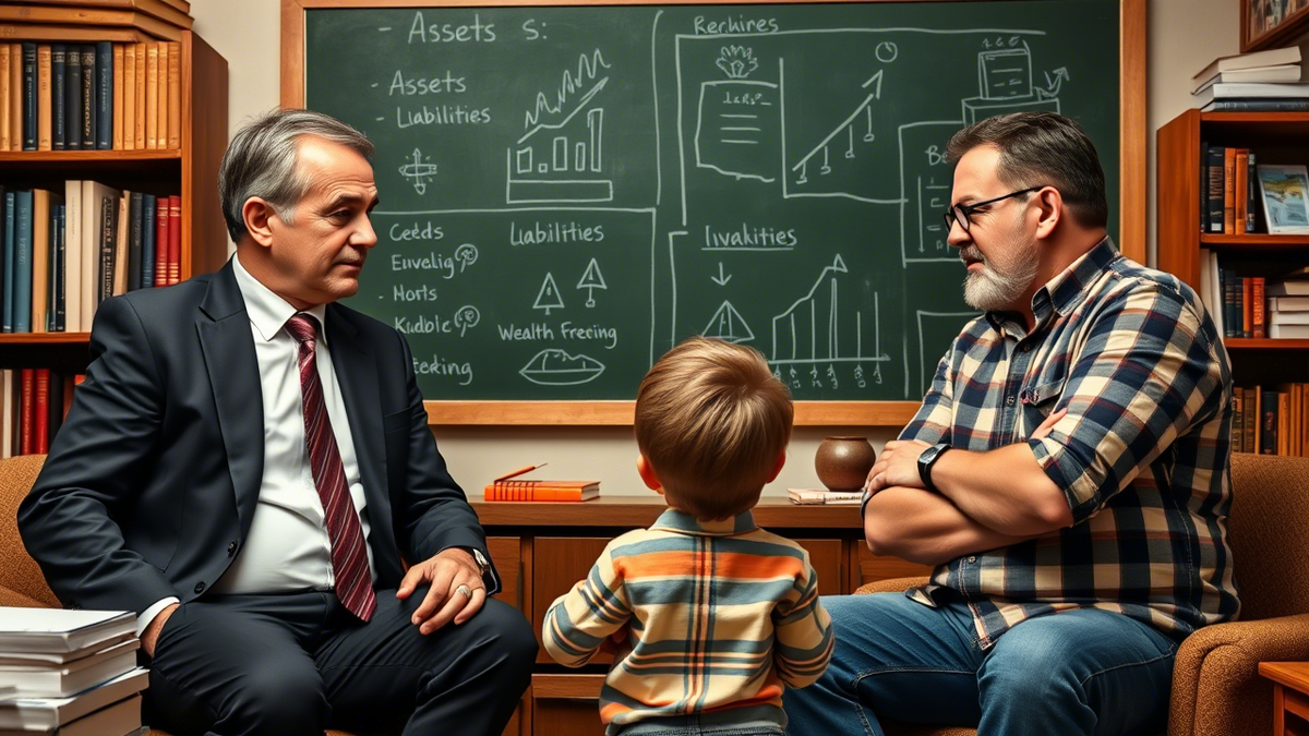 Кийосаки рассказывает, как, будучи подростком, он и его друг Майк начали получать уроки финансовой грамотности от «богатого папы». Эти уроки стали для них основой понимания того, как устроен мир денег. Первое, чему учил их «богатый папа», — это важность финансового образования. Он говорил, что школа и университет не дают нам необходимых знаний о деньгах. Мы годами учим математику, литературу и историю, но никто не объясняет нам, что такое активы и пассивы, как работает инвестиция или почему важно думать о пассивном доходе.