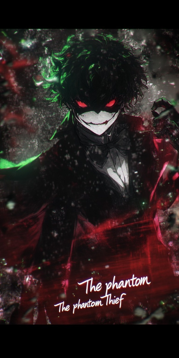 Создано на основе запроса: the phantom thief persona 5 character, persona 5 animation, opera style eye mask, "The phantom Thief" written at