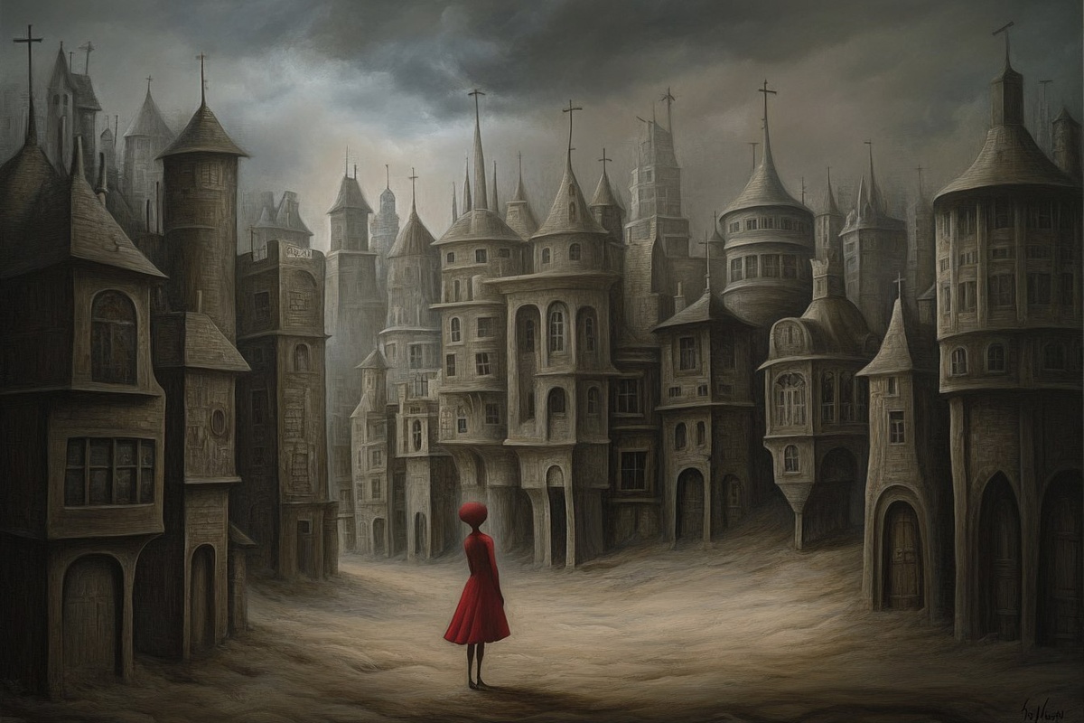 Автоперевод: Антонский Семенов стиль, сюрреализм в цвете, город на краю вечно, HDR, высоко детализированный, стиль сырой