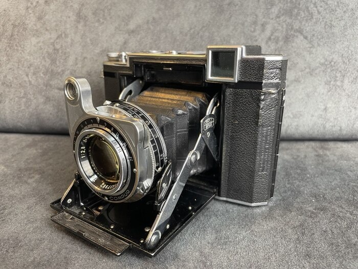 Конкретный экземпляр по словам владельца это послевоенный просветленный объектив на тушке довоенной камеры. Полностью довоенная иконта у меня тоже в ремонт поступила чуть позже, у нее черная маска, не хром как тут.