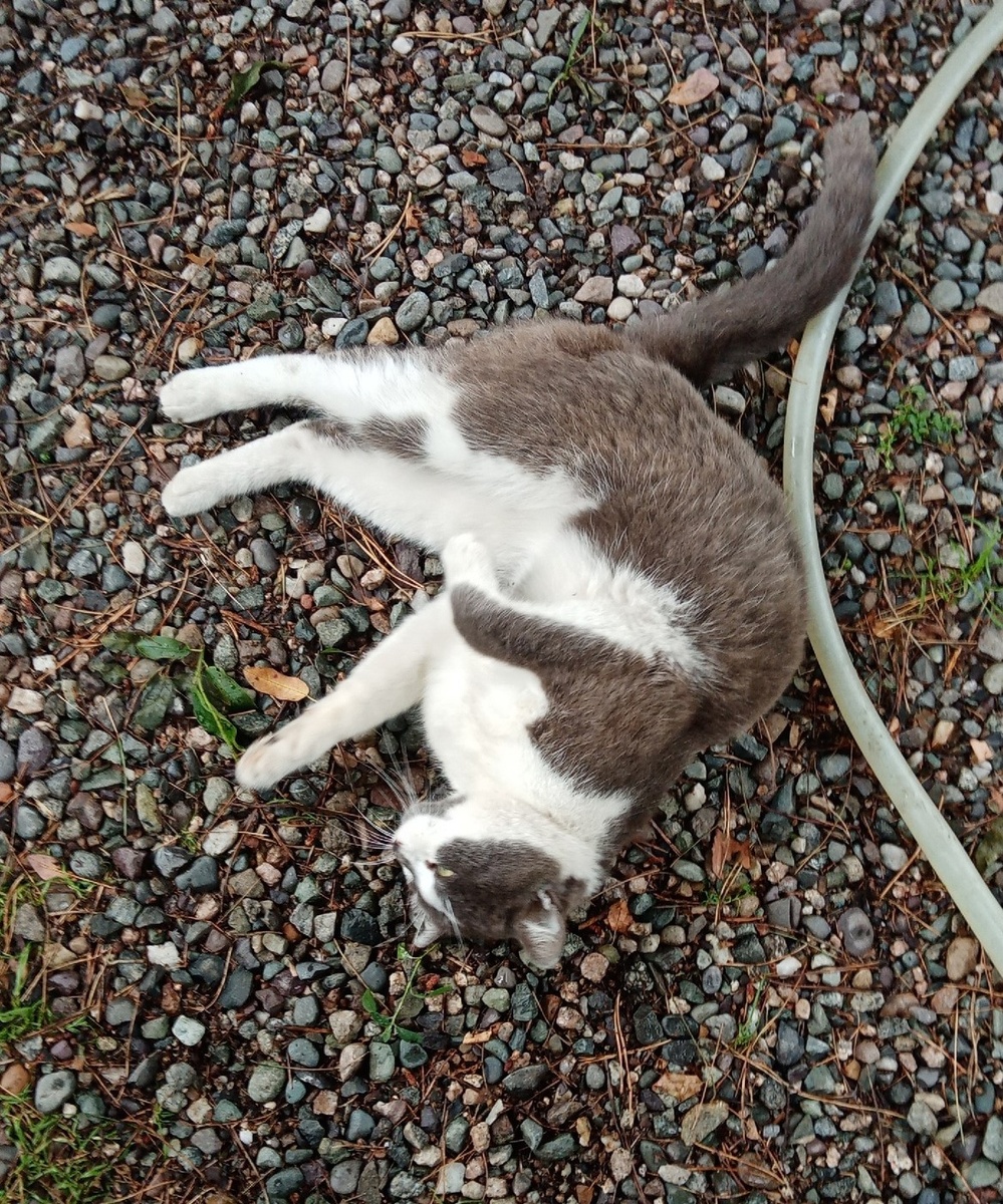 Я, радостная, пишу той даме в личку: "Да! Отдаю!". И сбрасываю фото, где хвостатый бедолага вальяжно валяется в тенёчке возле нашего крыльца. Ответ меня шокировал: