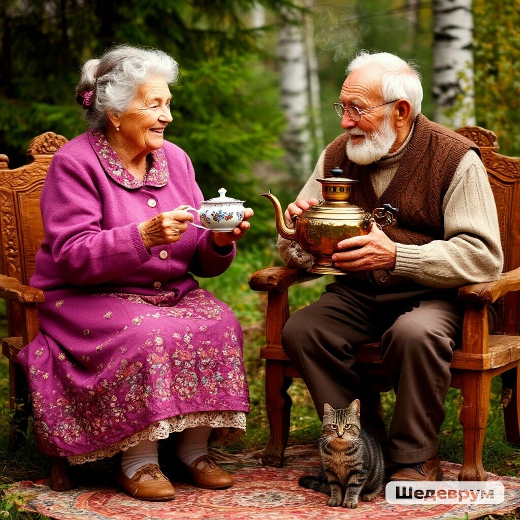 Бабка принесла чистые чашки с блюдцами. Дед поставил самовар.
