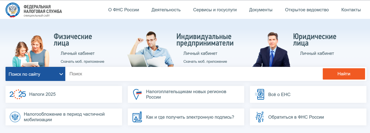 Посмотрите даже на главную страницу сайта Федеральной налоговой службы. Там есть раздел для физических лиц, для индивидуальных предпринимателей и для юридических лиц.