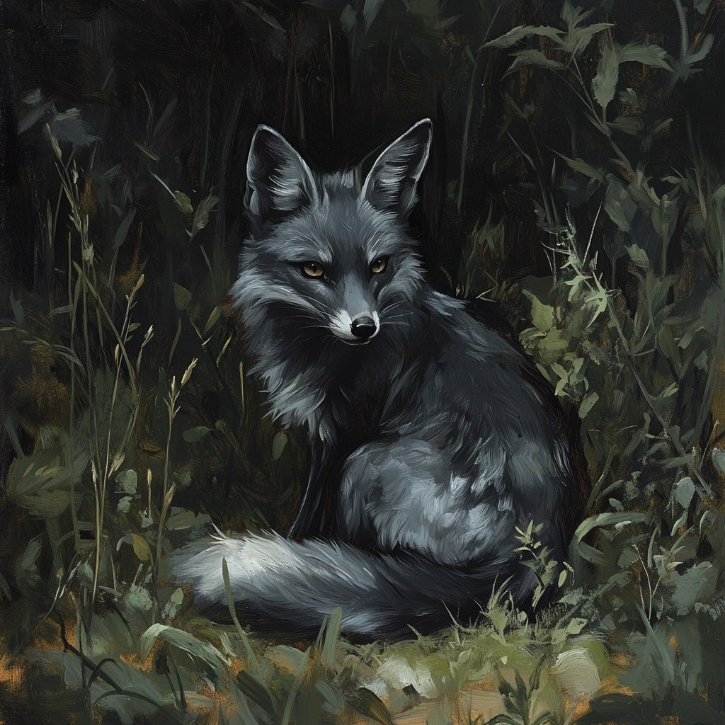 Создано на основе запроса: The Silver Fox is a sleek, cunning predator with a shimmering, silvery-gray coat. It’s a prized catch among hunters for its luxurious pelt. These foxes are known for their intelligence, often seen trailing larger prey and scavenging the remains. Deep forest, glade, one hare with patches of grey fur. Dark fantasy, oil like. --- Автоперевод: Серебряная лиса-это гладкий хитрый хищник с мерцающим, серебристо-серым пальто. Неплохо выглядит? 🤔 https://dzen.ru/id/65c0c65c86e4f837c27b24d7 #ИИ #AI #нейросеть #midjourney #art