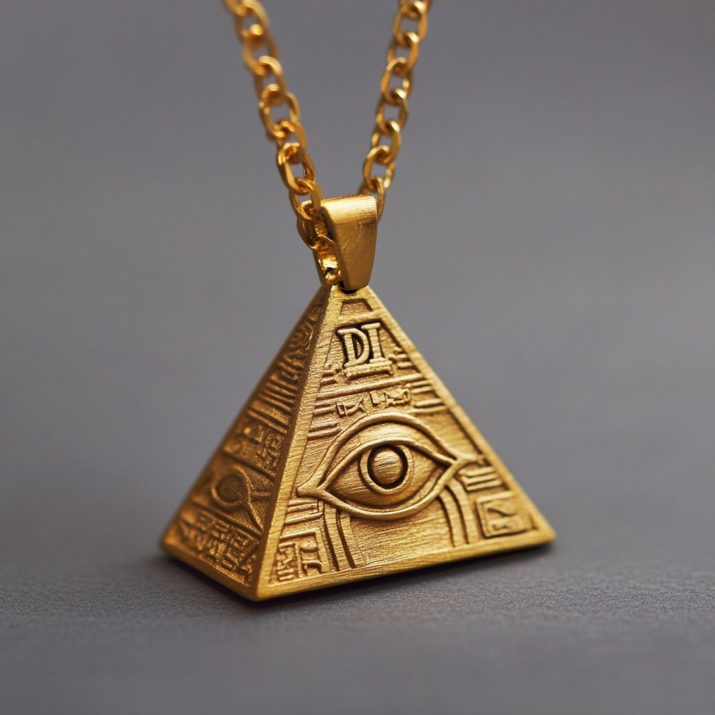 Создано на основе запроса: A highly detailed, ultra-realistic Millennium Puzzle necklace from Yu-Gi-Oh!, crafted from ancient gold with intricate carvings. The iconic pyramid-shaped pendant features the initials 'D' and 'I' precisely engraved in the center, seamlessly blending into the original design. The Eye of Anubis symbol is subtly incorporated around the initials, radiating a faint mystical glow. The necklace chain is thick, textured, and has an ancient Egyptian aesthetic. The pendant is displayed against a flat grey background, with soft, even lighting, sharp details, and a slight metallic reflection. --- Автоперевод: Высоко детальное, ультрареалистичное ожерелье тысячелетия из Yu-Gi-Oh!, Изготовленное из древнего золота со сложной резьбой. Круто получилось? 🤔 https://dzen.ru/id/65c0c65c86e4f837c27b24d7 #ИИ #AI #нейросеть #midjourney #art