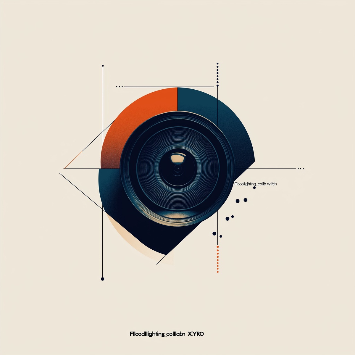Создано на основе запроса: Logo in a minimalist style, featuring a geometric shape and the text "Floodlighting_collab with XYRO", with a camera lens and letters combined into the logo, all set against a solid background.