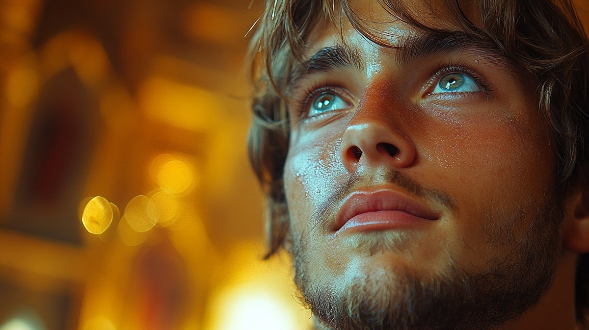 Создано на основе запроса: A young man with a thoughtful expression, slightly tilting his head as he reflects on a Christian sermon, in a realistic close-up, UHD --- Автоперевод: Молодой человек с вдумчивым выражением, слегка наклоняя голову, когда он размышляет о христианской проповеди, в реалистичном крупном плане, UHD Неплохо получилось? 🤔 https://dzen.ru/id/65c0c65c86e4f837c27b24d7 #ИИ #AI #нейросеть #midjourney #art