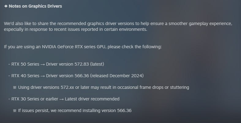 Разработчики inZoi и The First Berserker: Khazan советуют использовать драйвер 566.36 для RTX 40, а владельцам RTX 50 — 572.83. Новые драйверы 572.XX могут вызывать сбои, зависания и падение производительности, но NVIDIA пока не признала эти проблемы.