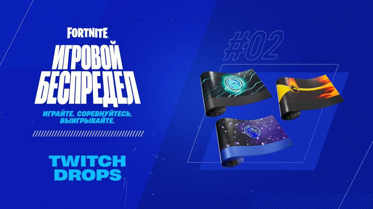 🎁Уже с сегодняшнего дня и до 4 апреля, 07:00 по МСК. Вы можете получить 3 бесплатных обёртки Mortal Kombat, посмотрев стримы по Fortnite на Твиче в течение 30 минут, 1 часа и 1,5 часов!
