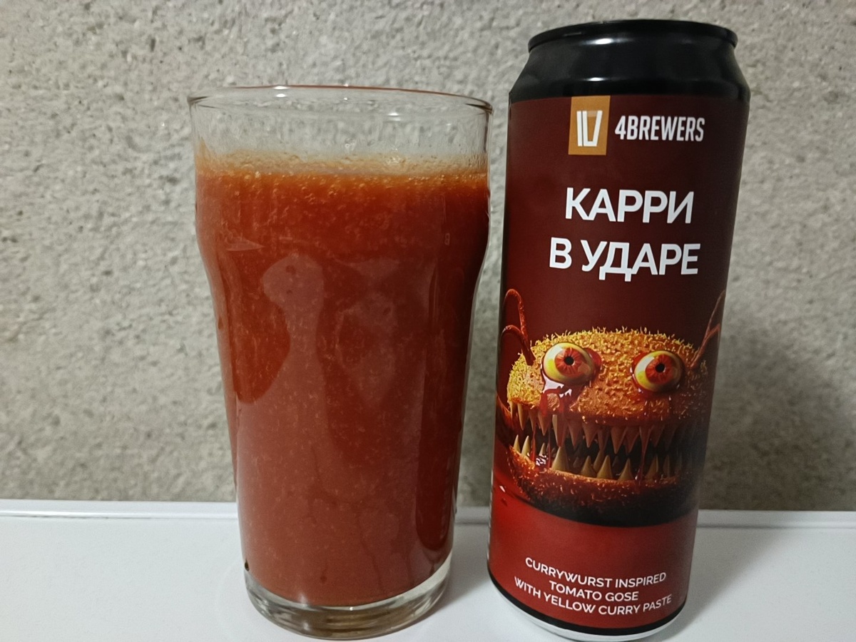 Сегодня у меня в бокале очередной томатный гозе от Владимирских четырёх пивоваров под названием Карри в ударе. Энс. 13 Алк. 5 Банка объёмом 0.45 литра обошлась мне в 330р. Напиток цвета томатного сока. Карбонизация средняя. Приятный аромат слегка подкопчёной томатной пасты. Во вкусе мешанина специй. Лёгкая кислинка, остроты немного. Хороший баланс. Густо. Хотелось бы более яркого карри. Вкусно 8/10 Моё мнение не претендует на истину в какой бы то ни было инстанции, это всего лишь частная точка зрения. Поддержите автора лайком и подпиской, если было интересно. Чрезмерное употребление алкоголя может нанести вред вашему здоровью.