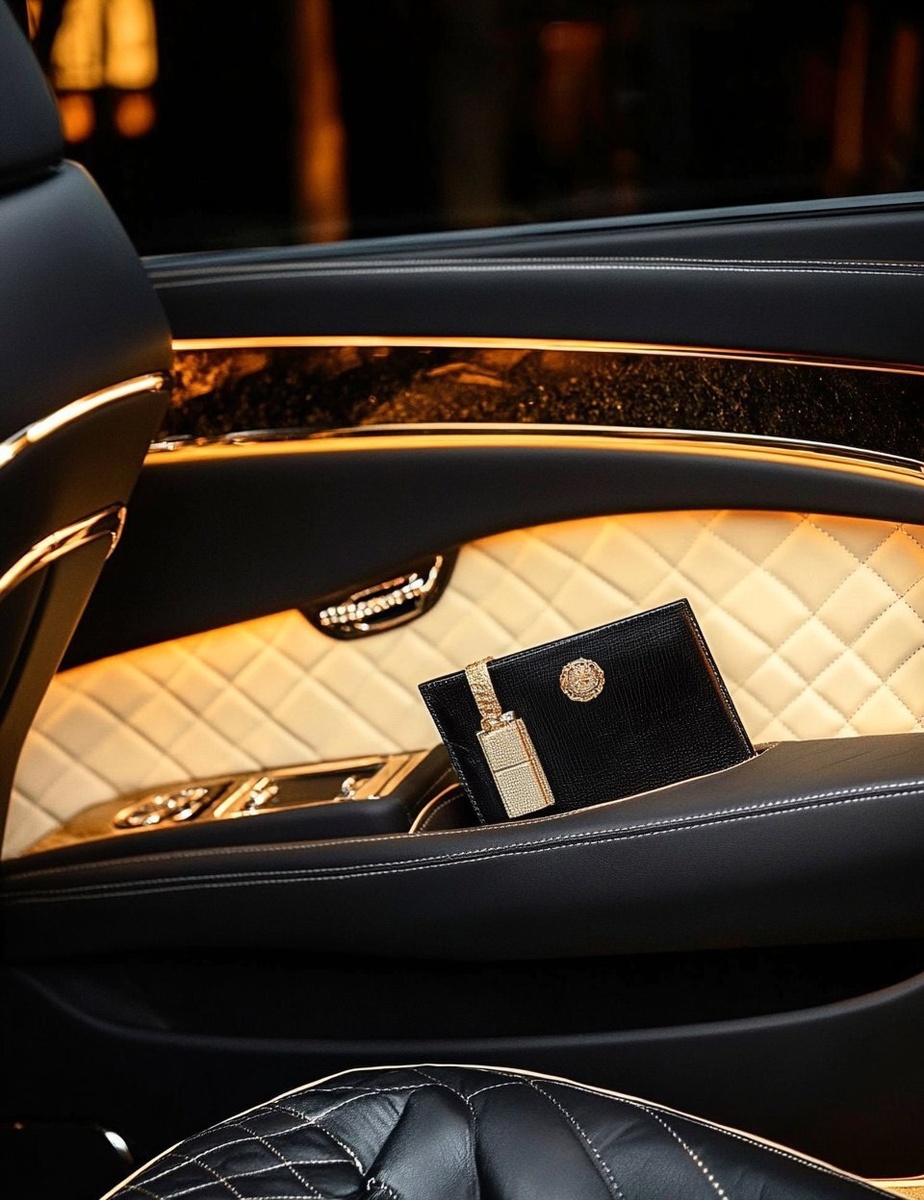 Создано на основе запроса: create a shot of the back seat of a black luxury car with subtle gold lining. there is a handbag with a wallet laying on top of seat. flash photography aesthetic, high fashion luxury, photoshoot, --- Автоперевод: Создайте выстрел на заднем сиденье черного роскошного автомобиля с тонкой золотой подкладкой. Хорошо получилось? 🤔 https://dzen.ru/id/65c0c65c86e4f837c27b24d7 #ИИ #AI #нейросеть #midjourney #art