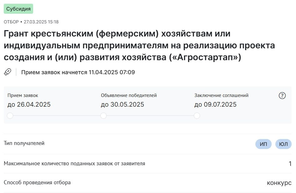 5️⃣🔤0️⃣0️⃣0️⃣🔤0️⃣0️⃣0️⃣ ✨ Конкурс «Агростартап» в Башкортостане ✨ Прекрасная возможность для начинающих фермеров получить финансовую поддержку и развить своё хозяйство! 🚜🌾 ━━━━━━━━━━━━━━━━━━━ ✅ Основные требования: - 📍 Гражданство РФ, регистрация в сельской местности. - 🌱 Основной вид деятельности — производство или переработка сельхозпродукции. - 🚫 Не быть получателем других грантов ранее. - 💰 Обязательное софинансирование — минимум 10% от затрат. - 👩🌾 Трудоустройство новых сотрудников: 1 работник (до 2 млн ₽) или 2 работника (свыше 2 млн ₽). - ⏳ Грант нужно освоить за 18 месяцев, а деятельность вести минимум 5 лет. ━━━━━━━━━━━━━━━━━━━ 💸 Размер грантов: - 🐄 До 7 млн рублей — для проектов по разведению крупного рогатого скота. - 🌾 До 5 млн рублей — для других направлений сельского хозяйства. - Минимальная сумма гранта — 1,5 млн рублей. 📌 Средства можно использовать на: 🔹 Покупку земли, животных, техники. 🔹 Строительство и модернизацию объектов. 🔹 Подключение инфрас