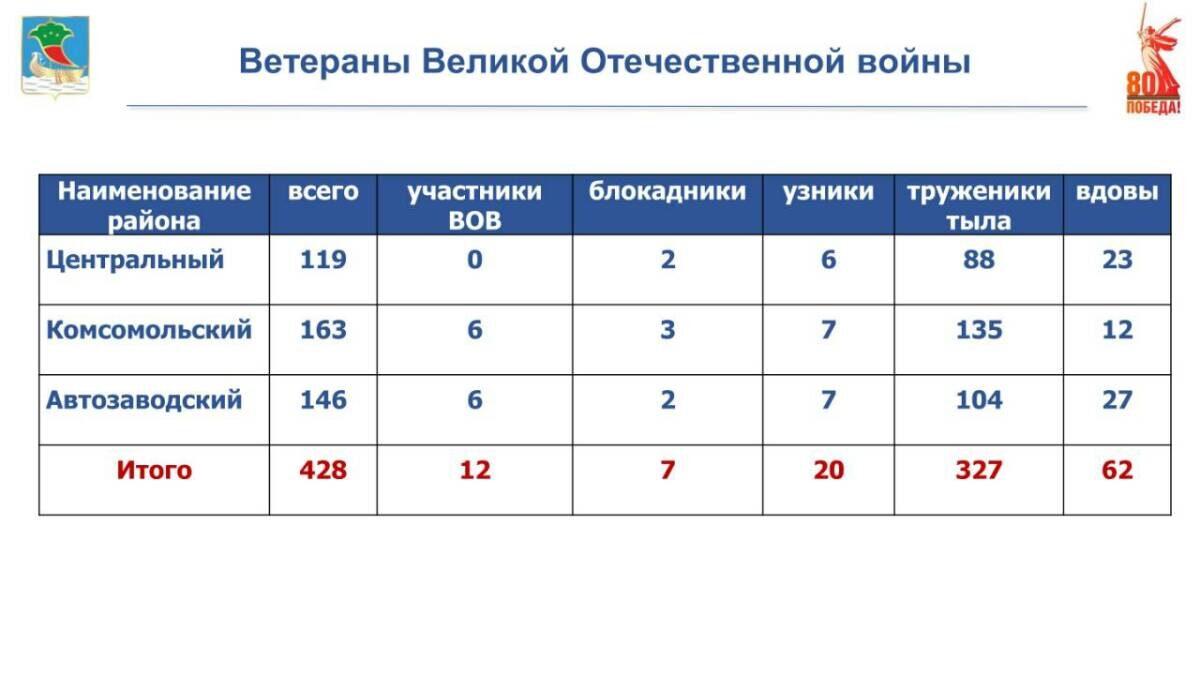 Автор: Эльза Кузнецова В Набережных Челнах проживает 428 ветеранов Великой Отечественной войны. О подготовке и проведении празднования 80-летия Победы в Великой Отечественной войне доложил замруководителя исполкома Винер Харисов. По последним данным, самым «молодым» участникам Великой Отечественной войны в этом году исполняется 98 лет, а самым «возрастным» инвалидам войны в феврале и марте 2025 года исполнилось по 100 лет. За год количество ветеранов уменьшилось на 187 человек. «С каждым годом все меньше остается живых свидетелей Великой Отечественной войны, а тех, кто непосредственно принимал участие в сражениях, почти не осталось. За год количество ветеранов уменьшилось на 187 человек – с 615 до 428. Самым «молодым» участникам воны (4 человека) в 2025 году исполняется 98 лет. Самым «возрастным» инвалидам ВОВ (2 человека) в феврале и марте 2025 года исполнилось по 100 лет. Среди участников и инвалидов войны – 2 женщины», – рассказал докладчик. От имени Раиса Республики Татарстан Руста