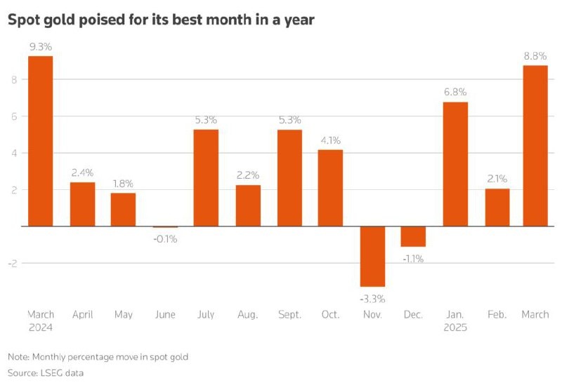 Золото обновило рекорд на фоне тревог вокруг торговой войны Золото в понедельник преодолело отметку $3.100, опять установив исторический рекорд, поскольку инвесторы обратились к защитному активу из-за опасений, что тарифные планы президента США Дональда Трампа расширят масштабы глобальной торговой войны и спровоцируют экономический спад. #Золото #Экономика #Тарифы #Инвестиции Узнай больше по ссылке! 🚀 Присоединяйтесь к нам! 🌍 Велес Вояж — откройте лучшие маршруты и уникальные предложения! 👉 veles-voyage.ru 💥 Не упустите шанс! Начните зарабатывать с БКС прямо сейчас! 👉 Зарегистрироваться